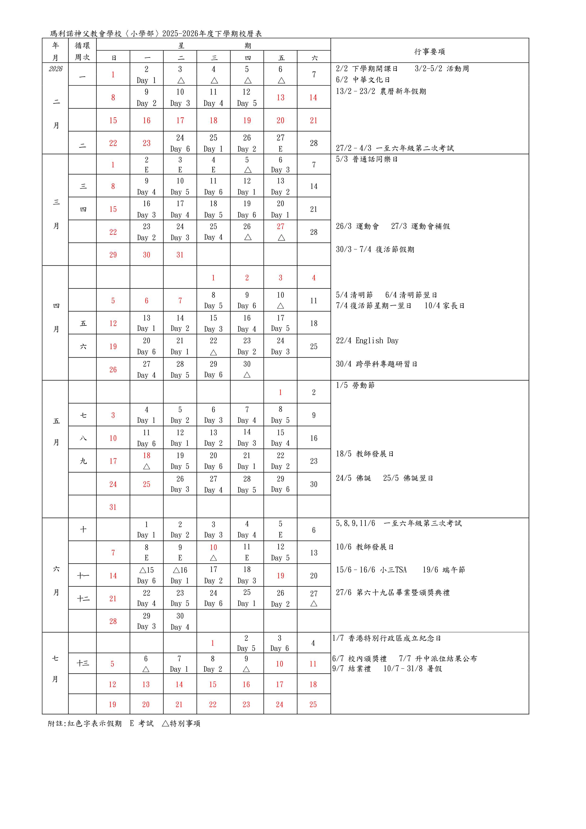 校曆表
